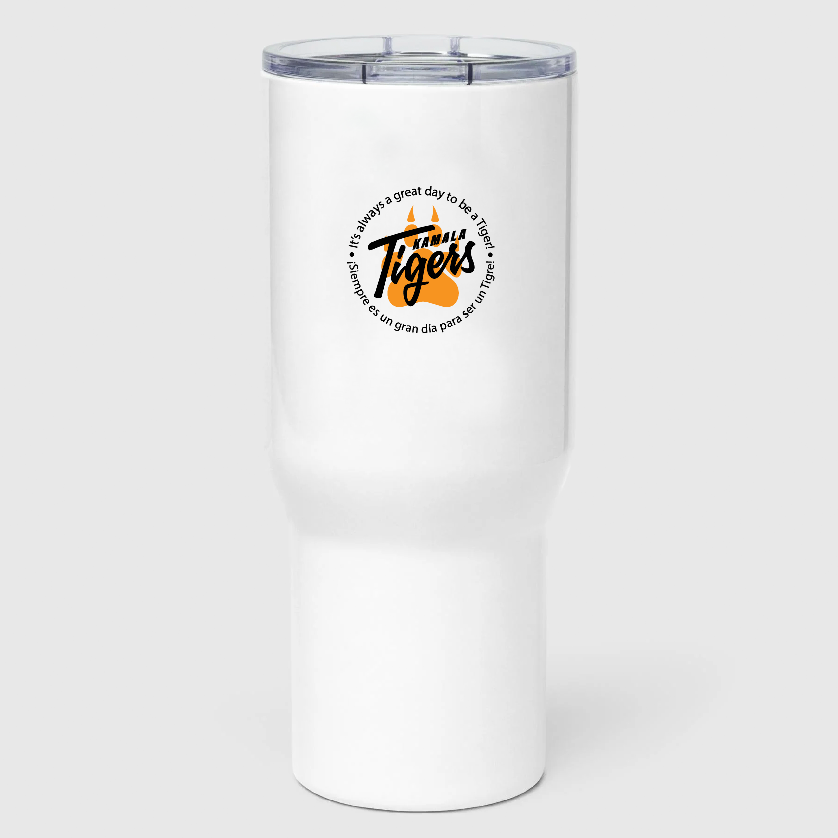 Sip in style and comfort with an elevated travel mug. With its sleek and durable design, you’ll love taking this mug wherever you go. It fits into most car cup holders and has a spill-proof plastic lid. Commute to work or go on new adventures—this travel mug will keep your beverage safe and at just the right temperature.