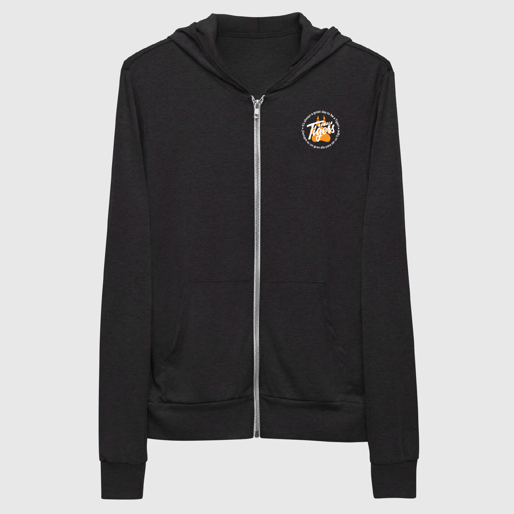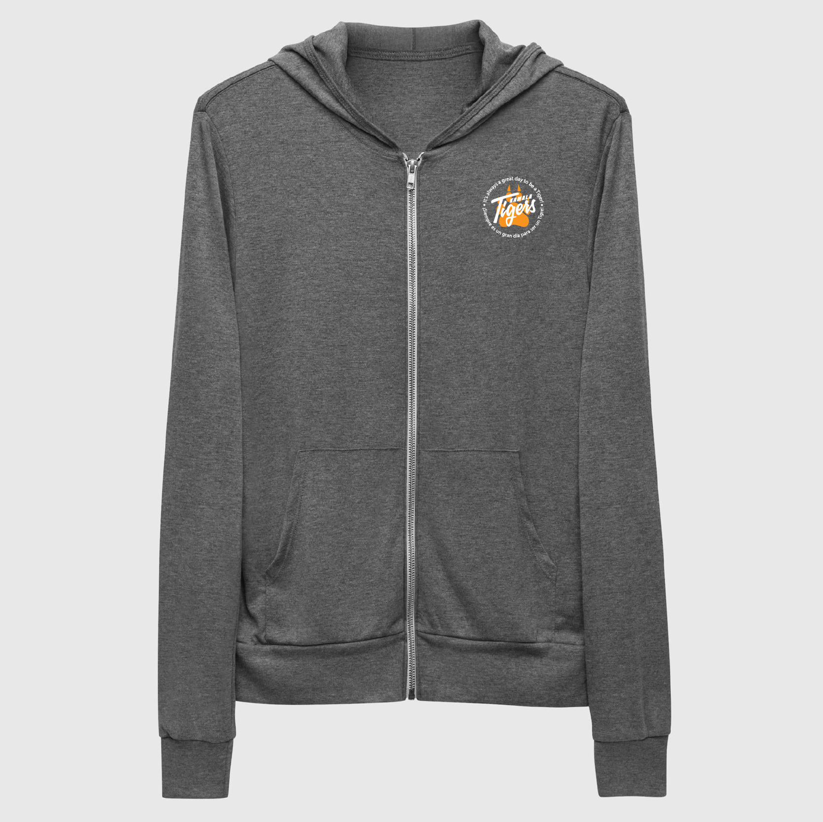 For when you get chilly on a summer evening by the lake, or simply need something comfy to throw on, this lightweight unisex zip hoodie with a modern fit, hood, front zip, and a kangaroo pocket is the way to go.