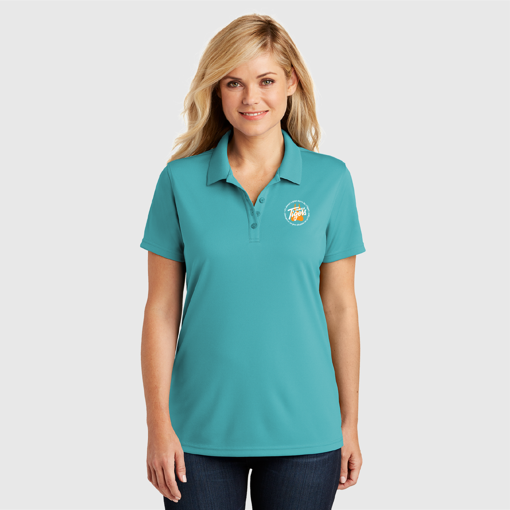 • 3-button placket with pearlized, dyed-to-match buttons
